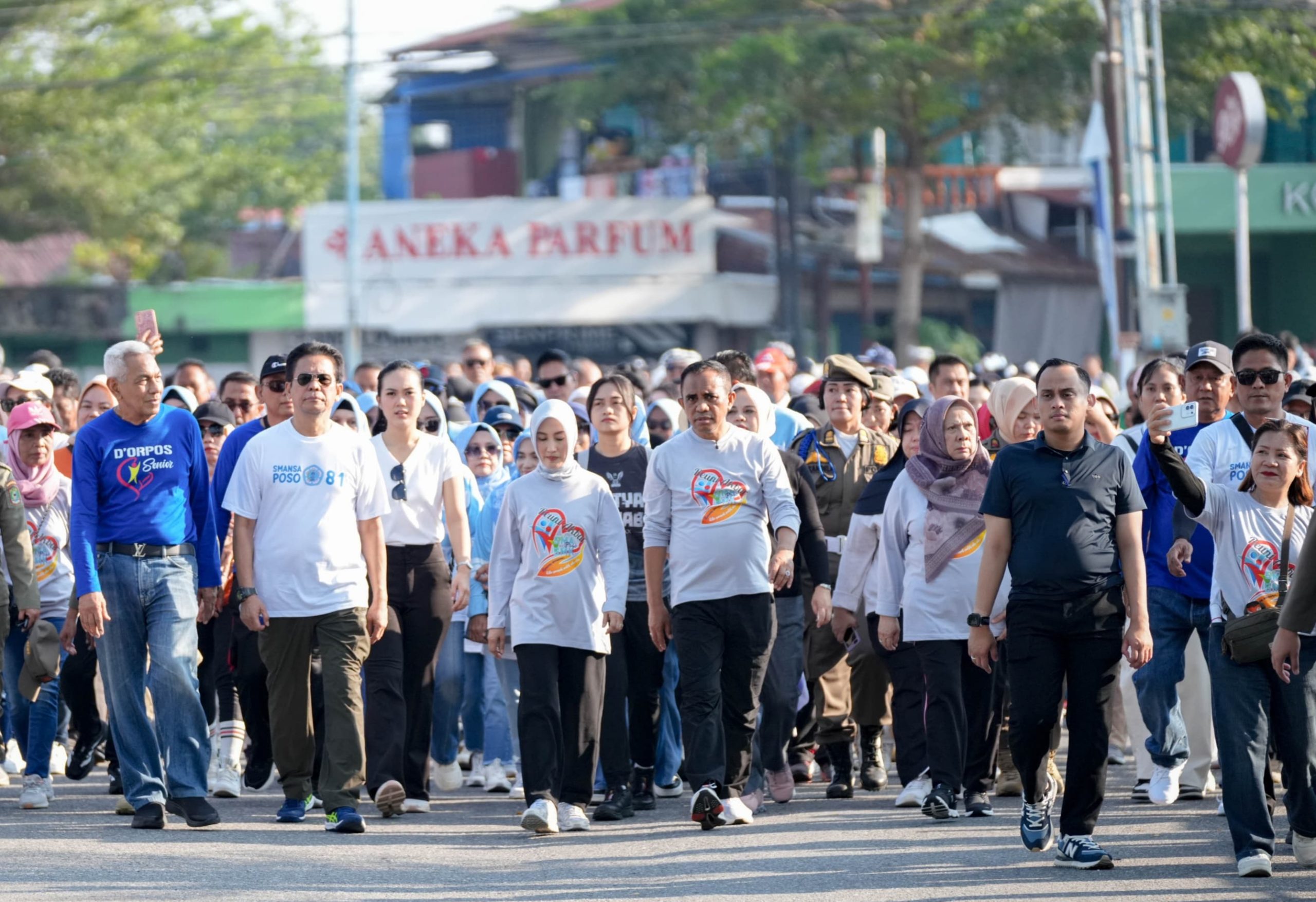 Peserta fun walk menempuh rute dari SMA Negeri 1 Poso menuju Lapangan Sintuwu Maroso Poso. Kegiatan ini diikuti oleh guru, siswa, serta alumni dari berbagai angkatan. Usai melepas peserta, Gubernur bersama Ketua TP PKK, Wakil Ketua KPK RI, Wakil Gubernur, dan Bupati Poso turut ambil bagian berjalan santai menyusuri rute yang telah ditentukan, sehingga semakin menambah semangat para peserta.